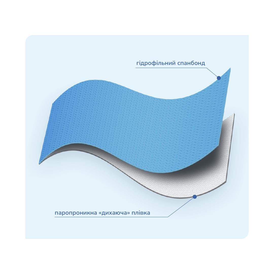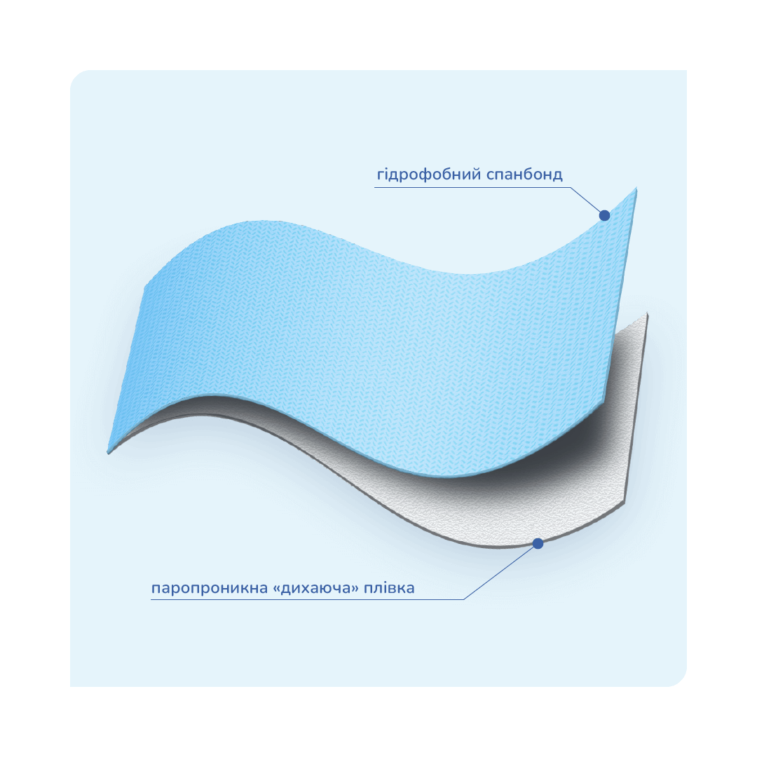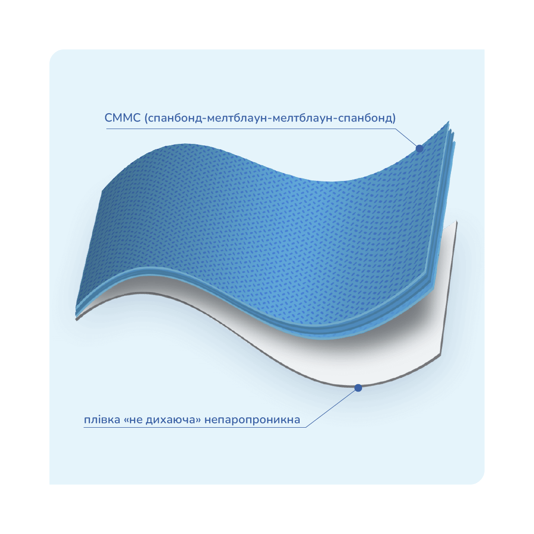 - Забезпечує повний бар’єр для рідин і високий бактеріально-вірусний захист, без повітро- та паропроникності